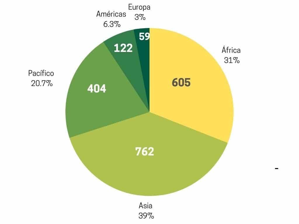 | África | Américas | Asia | Europa | Pacifico | Total | |