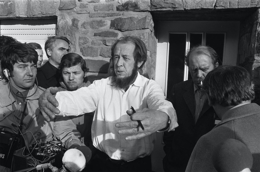 Aleksandr Solzhenitsyn (1918 – 2008), famoso por recibir el premio nobel de literatura en 1970, fue un escritor e historiador ruso que dedicó su trabajo a criticar el socialismo soviético. Una vez graduado de matemáticas y física a los 23 años, comenzó a servir en el Ejército Rojo en 1941. Por los siguientes 4 años, mientras peleaba a favor de los rusos en los campos de batalla de la Segunda Guerra Mundial, vio y rechazó la forma en que Stalin conducía la guerra. Por eso fue arrestado en 1945 cuando se descubrieron la correspondencia que tenía con un amigo acerca de sus opiniones.