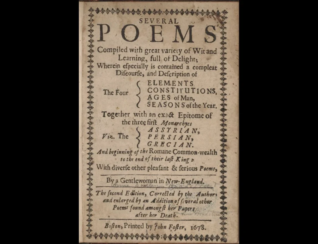 Several Poems Compiled with Great Variety of Wit and Learning (1678) de Anne Bradstreet. Boston: John Foster.