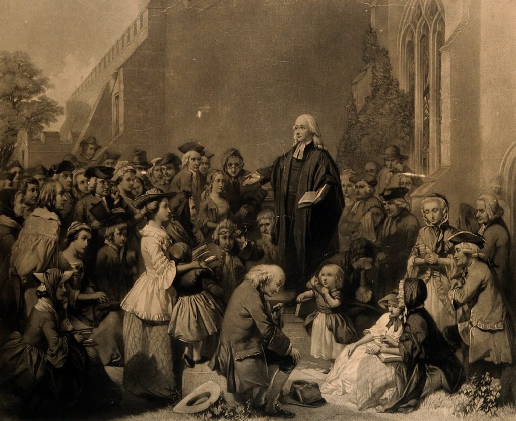 El 2 de abril de 1739, en respuesta a la invitación de George Whitefield, Wesley llegó a Bristol. Whitefield le convenció de la necesidad de predicar en el campo para alcanzar al mayor número de personas, especialmente a la clase trabajadora, que la iglesia establecida casi no tocaba en ese entonces. Al día siguiente, a pesar de sus reservas, pero animado por el ejemplo de Whitefield, Wesley, con 36 años, predicó su primer sermón al aire libre, exponiendo la Biblia a aquellos que no asistían a la iglesia. Entonces nació el Avivamiento metodista, el avivamiento evangélico, pero también todo lo que se oponía a ello.