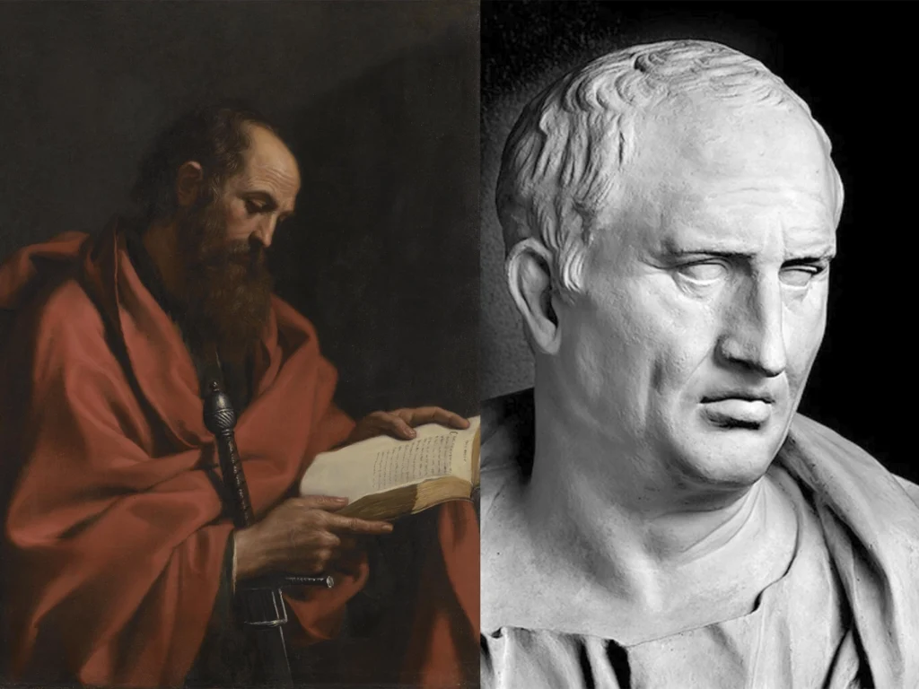 Una de las principales diferencias entre Pablo (izquierda) e individuos como Cicerón (derecha) era su situación económica. / Imágenes: Giovanni Francesco Barbieri y Students For Liberty