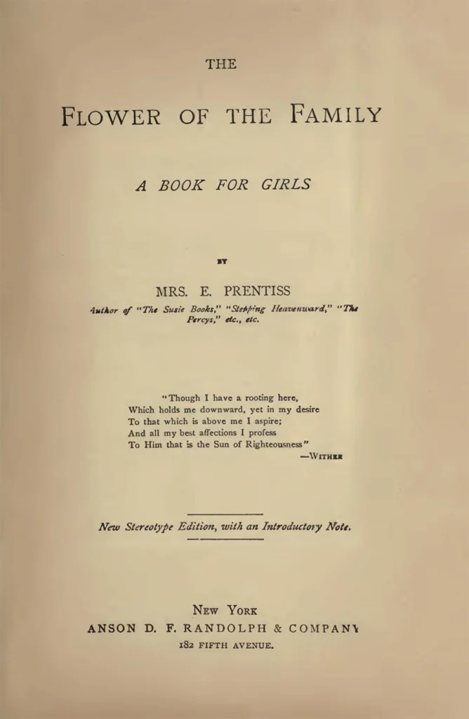 – Marion Harland “Elizabeth Prentiss”, Scanned by Deidre Johnson for her 19th-century girls series webpage, consultado julio de 2022.
