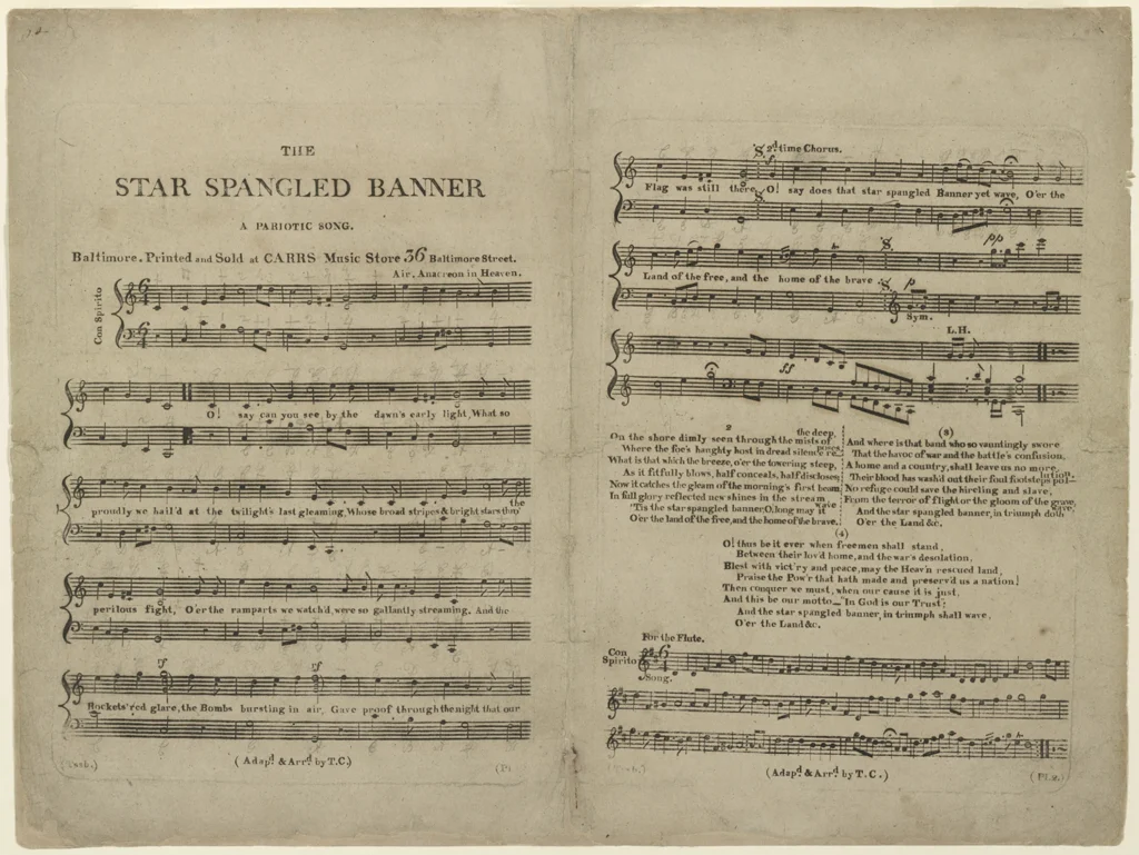 El ejemplo más claro de esta fusión se encuentra en el himno nacional, The Star-Spangled Banner (La bandera tachonada de estrellas). Escrito por Francis Scott Key en 1814 tras el bombardeo británico de Fort McHenry, no fue adoptado oficialmente como himno sino hasta 1931 por el presidente Herbert Hoover. La mayoría de los estadounidenses solo cantan y conocen la primera estrofa, pero es en la cuarta y última donde se revela una conexión asombrosa. En ella, Key no solo apeló a Dios, sino que propuso un lema para la nación: