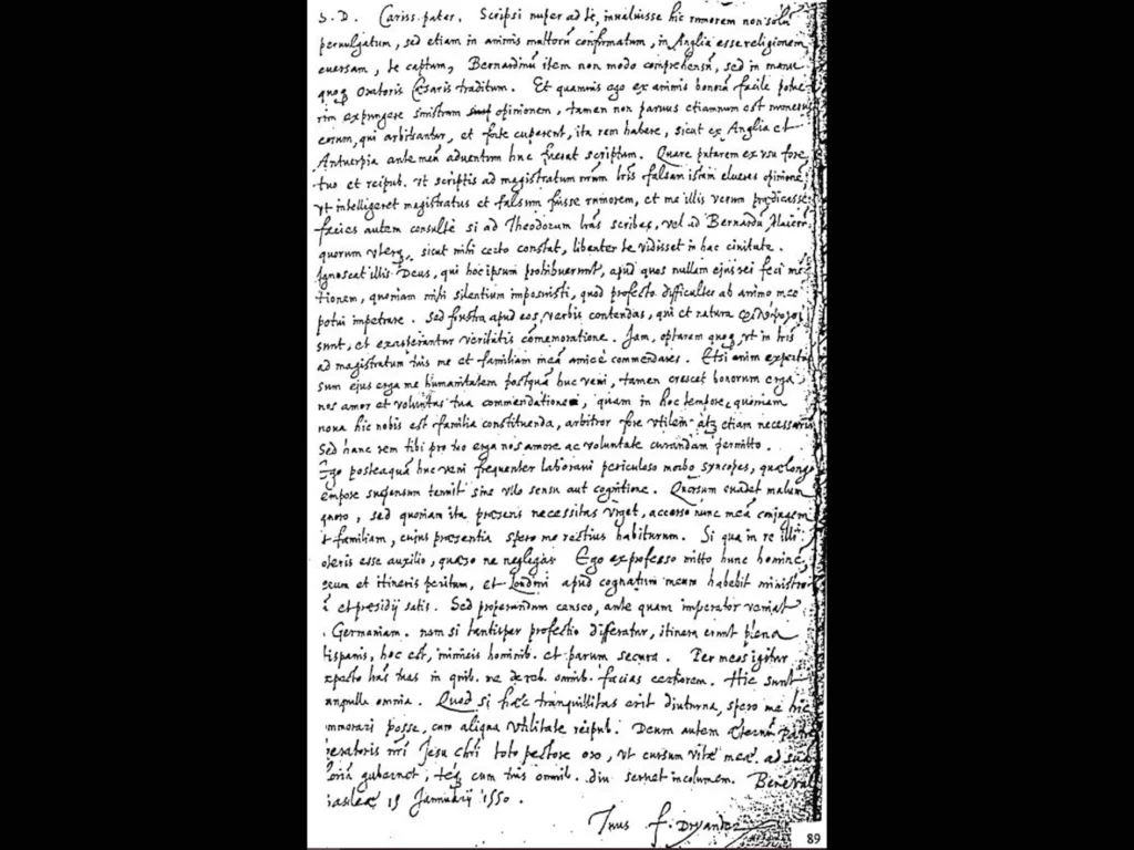 No hubieran podido alejarme tus amenazas del camino de Constantinopla, si una cadena más fuerte no me hubiera retenido inesperadamente en esta parte de Europa. Pues, para contarte como a mi mejor amigo, y a los demás hermanos que están contigo, lo que me ha ocurrido en esta ciudad (Estrasburgo) sin que yo lo esperara, has de saber que he tomado como compañera de mi vida a la señora Margarete Eltere, noble doncella.