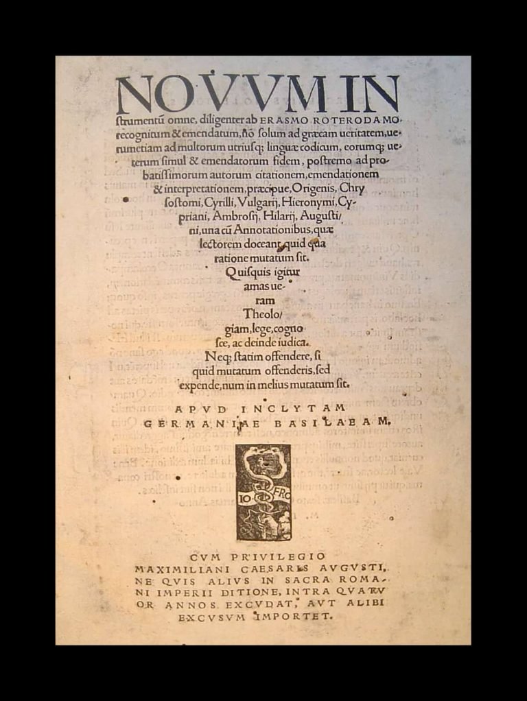 Portada del Textus Receptus, de Erasmo Róterdam.