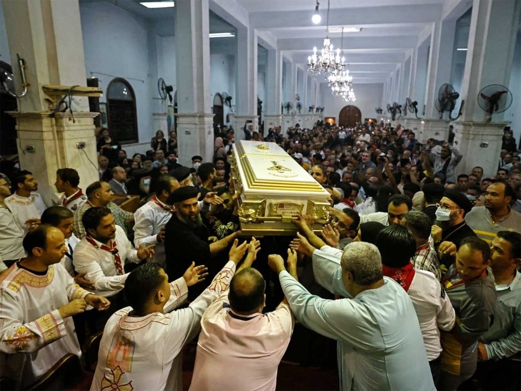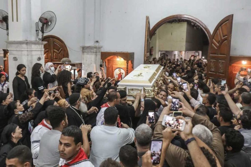 Los dolientes egipcios asisten al funeral de las víctimas muertas en un incendio en la iglesia de la Santísima Virgen María en la gobernación de Giza en Egipto el 14 de agosto de 2022 / Foto: AFP