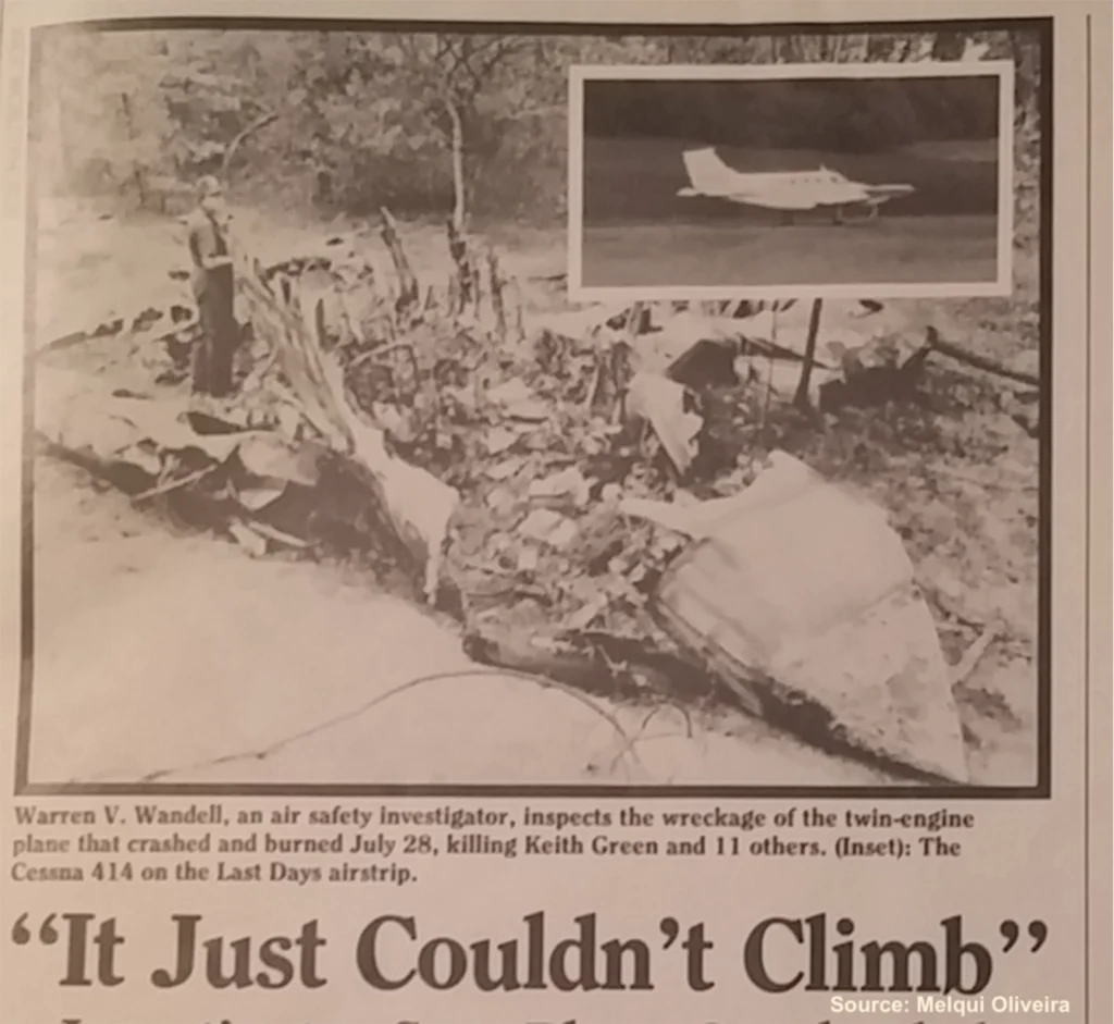 En las imágenes que me arrojó el buscador, me pareció que su aspecto era algo ochentero, aunque pronto vi que, según la fecha de su fallecimiento (28 de julio de 1982), no vivió mucho de esa época. Más bien, su estilo era relajado, usaba atuendos informales como overoles, sandalias, camisetas con estampados… etc. Ahora, no tuve que hacer mucho scroll para leer la siguiente pregunta: “¿Por qué se estrelló el avión de Keith Green?”. Así supe que el final de su vida no llegó en su vejez, sino a sus 28 años, en un fatídico accidente en el que también fallecieron tres adultos y ocho niños. Mi frente y mi corazón se arrugaron al tiempo. Sin embargo, aunque aquel asunto era digno de generar alguna conexión, me parecía un poco amarillista.