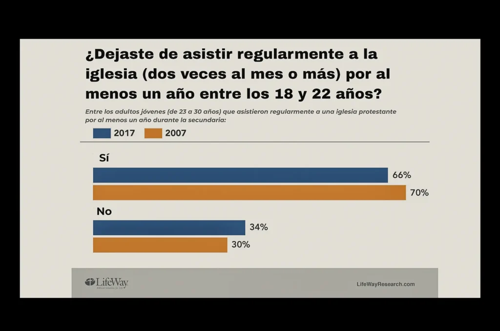 La buena noticia para los líderes cristianos es que las iglesias no parecen estar perdiendo más estudiantes que hace 10 años. Sin embargo, la diferencia entre la tasa de deserción de entonces y ahora no es lo suficientemente grande estadísticamente como para decir que ha mejorado. La realidad es que las iglesias protestantes siguen viendo cómo la nueva generación se aleja al llegar a la adultez. Independientemente de factores externos, la Iglesia protestante se está reduciendo lentamente desde dentro.