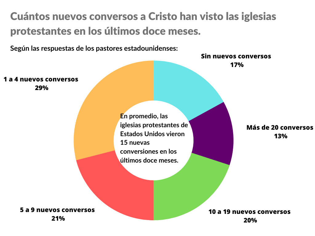 Sin embargo, las de corriente histórica son más propensas que las evangélicas a tener dificultades para lograr esto. Además, con un 23 %, los pastores de iglesias históricas tienen más probabilidades que los evangélicos, con un 15 %, de reportar que no tienen nuevos conversos.