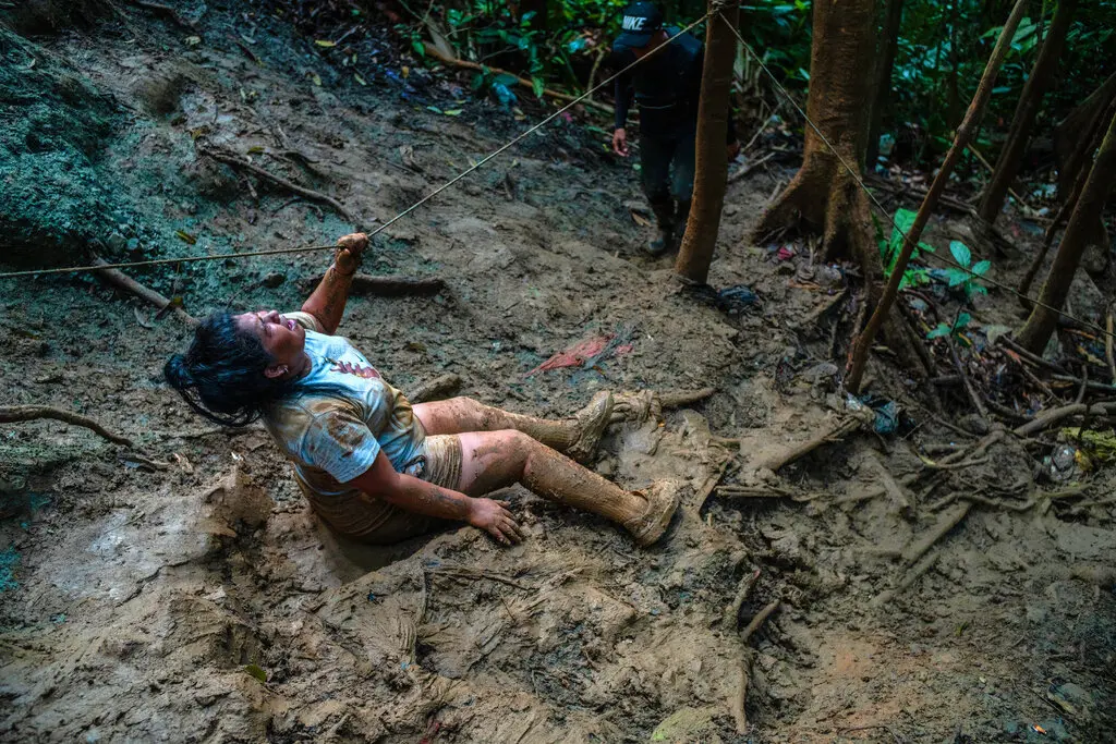 Gabriel caminó por una hora y media cuesta arriba. Su cuerpo no estaba acostumbrado al calor, la falta de brisa, la humedad y el esfuerzo físico que exige la selva. A su alrededor había otras personas en condiciones más desafiantes: algunos con muletas, otros de la tercera edad y muchos con niños pequeños. Después de subir la loma, el grupo se preparó para acampar. La cena consistía solo de atún en lata y galletas. De acuerdo a las entrevistas de la ACNUR, el viaje por la selva del Darién es de mínimo dos días y máximo doce, dependiendo de las condiciones del grupo y de la jungla.
