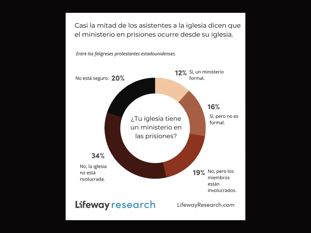 En el estudio de Lifeway se encontró que solo 1 de cada 4 asistentes a la iglesia (25%) ha estado involucrado en el ministerio con personas encarceladas, exreclusos o sus familias. Ese porcentaje incluye un 4% que dice estar participando actualmente y un 21% que lo ha hecho en algún momento del pasado. Además, el 10% afirma haber estado involucrado en actividades o capacitaciones relacionadas con el ministerio en prisiones.