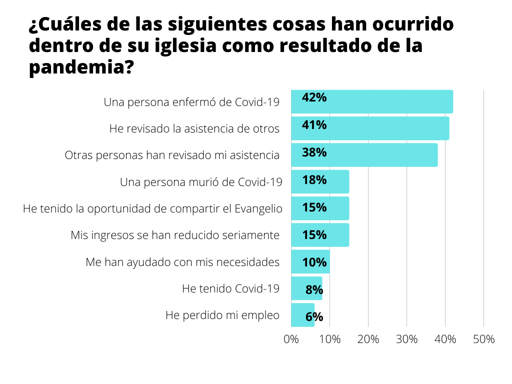 Pensando en la duración de la pandemia de coronavirus en 2020 y 2021, el 41% de los congregantes regulares dicen que verificaron la asistencia de otros feligreses en su iglesia, y el 38% de los asistentes afirma que las personas en su iglesia han verificado si ellos también han asistido a la congregación, esto según una encuesta reciente de Lifeway Research. Una versión completa de la encuesta se puede ver en este enlace. Otros de los descubrimientos de esta encuesta sobre el estado de la fe en Estados Unidos son presentados en algunas gráficas que exponemos aquí.