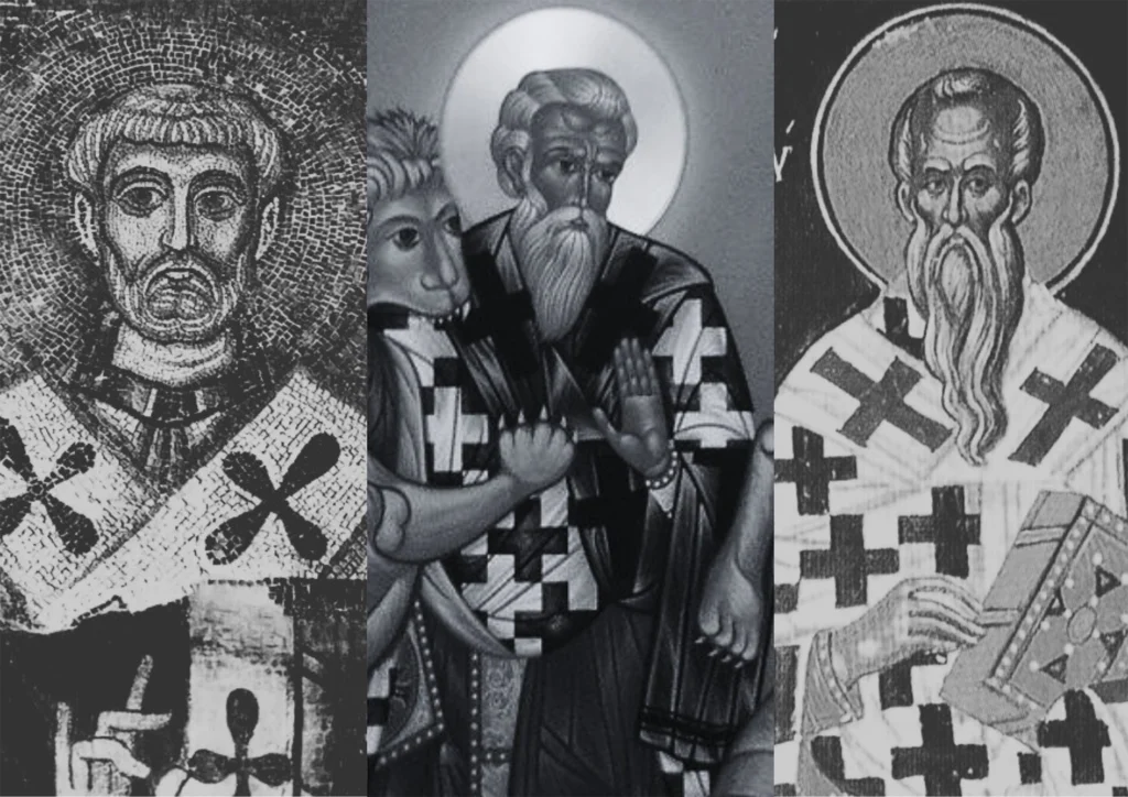 De izquierda a derecha, los retratos de Clemente de Roma, Ignacio de Antioquía y Policarpo de Esmirna. / Foto: Wikipedia y Manquehue