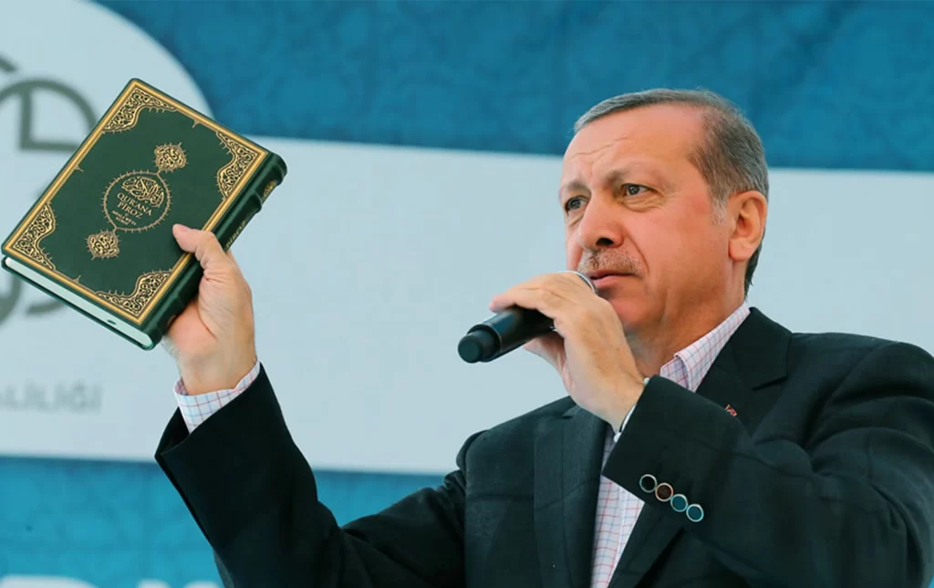 Erdogan ha animado a su base política apelando al Islam conservador. Esta base está compuesta principalmente por dos grandes grupos: los islamistas de la Hermandad Musulmana y los Nacionalistas Turcos. Por medio de su discurso islámico conservador, Erdogan ha podido criticar a su adversario político, Kemal Kılıçdaroğlu, de quien dice alejaría a Turquía del Islam. En una nación en la que el Islam conforma la mayoría de la población y en la que la identidad religiosa se ve amenazada por el avance de la modernidad y los cambios culturales, la defensa de los valores tradicionales se ha convertido en una preocupación especial para amplios sectores del electorado. El éxito de Erdogan radica precisamente en que ha sabido explotar los miedos y esperanzas de estos sectores de la población que se ven confrontados por la influencia occidental y la modernidad y que al mismo tiempo anhelan un regreso a la seguridad aparente de los valores tradicionales.