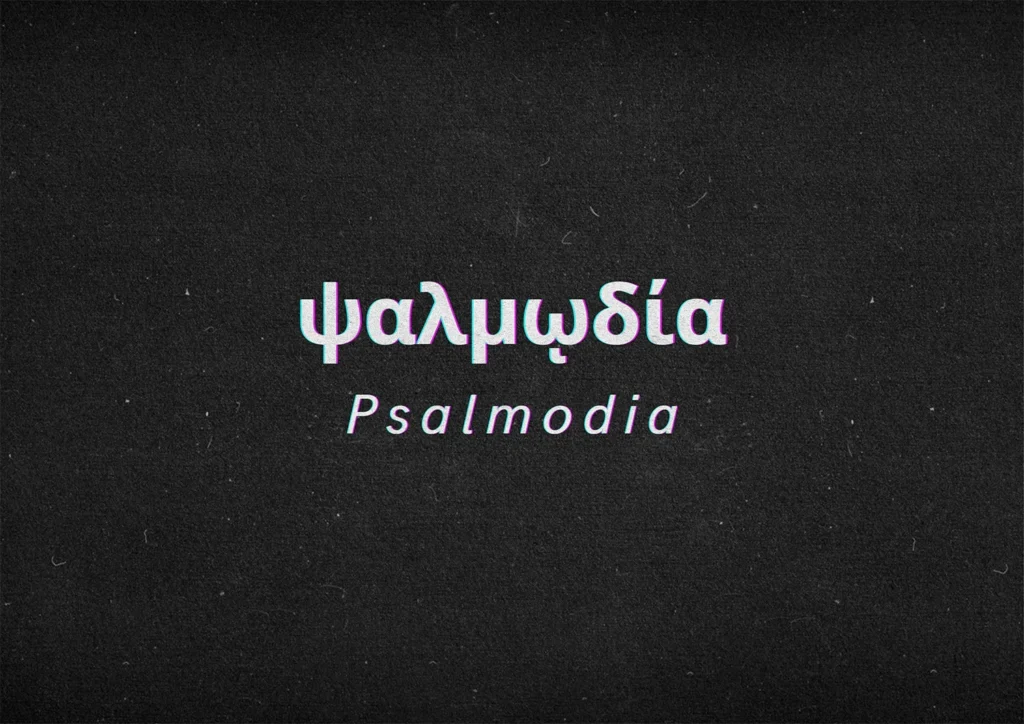 El término proviene del griego psalmodia (ψαλμῳδία), compuesto por psalmos (“salmo”), oide (“oda, canción”), con el sufijo -ía, que indica acción o cualidad. Literalmente es la “acción de cantar salmos”, el acto de cantar los salmos como parte del culto a Dios. No se trata simplemente de leerlos o recitarlos, sino de entonarlos con una melodía que les confiera fuerza emocional y sentido comunitario. La salmodia convierte la meditación en proclamación, la poesía en plegaria cantada.