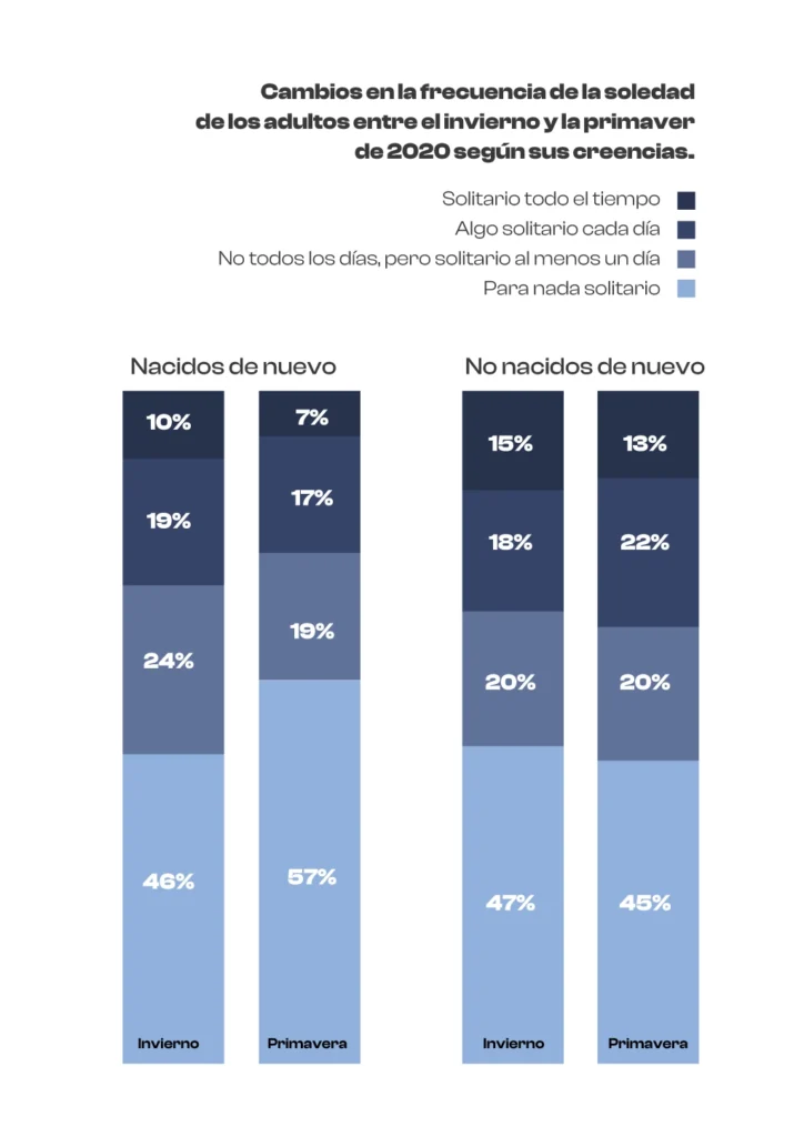 Como lo anotó Susan Mettes, autora de The Loneliness Epidemic (en español, La epidemia de la soledad), los cristianos tienen porcentajes más bajos de soledad. Sin embargo, esto puede deberse a que no les gusta decirles a otros que se sienten solos, y esto, según Mettes, pudo cambiar los números en las encuestas. Además, las diferencias entre creyentes y no creyentes no son muy grandes en estos porcentajes.