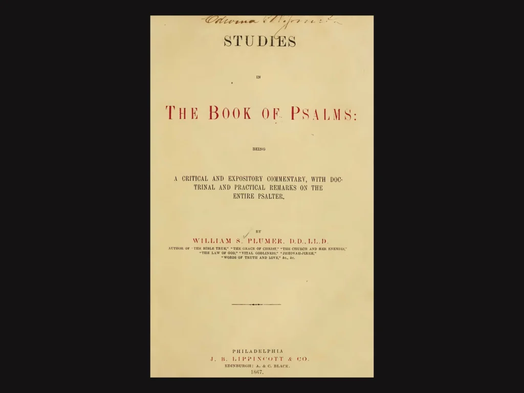 Primera página de Studies in the Book of Psalms (1867), por William Swan Plumer / Imagen: Log College Press